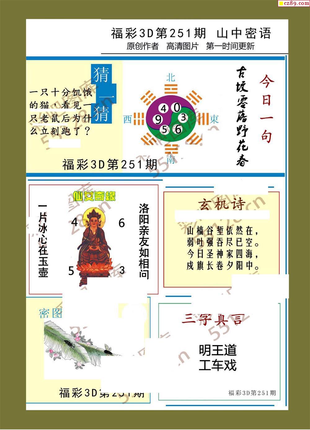 福彩3d25年251期山中密语彩报