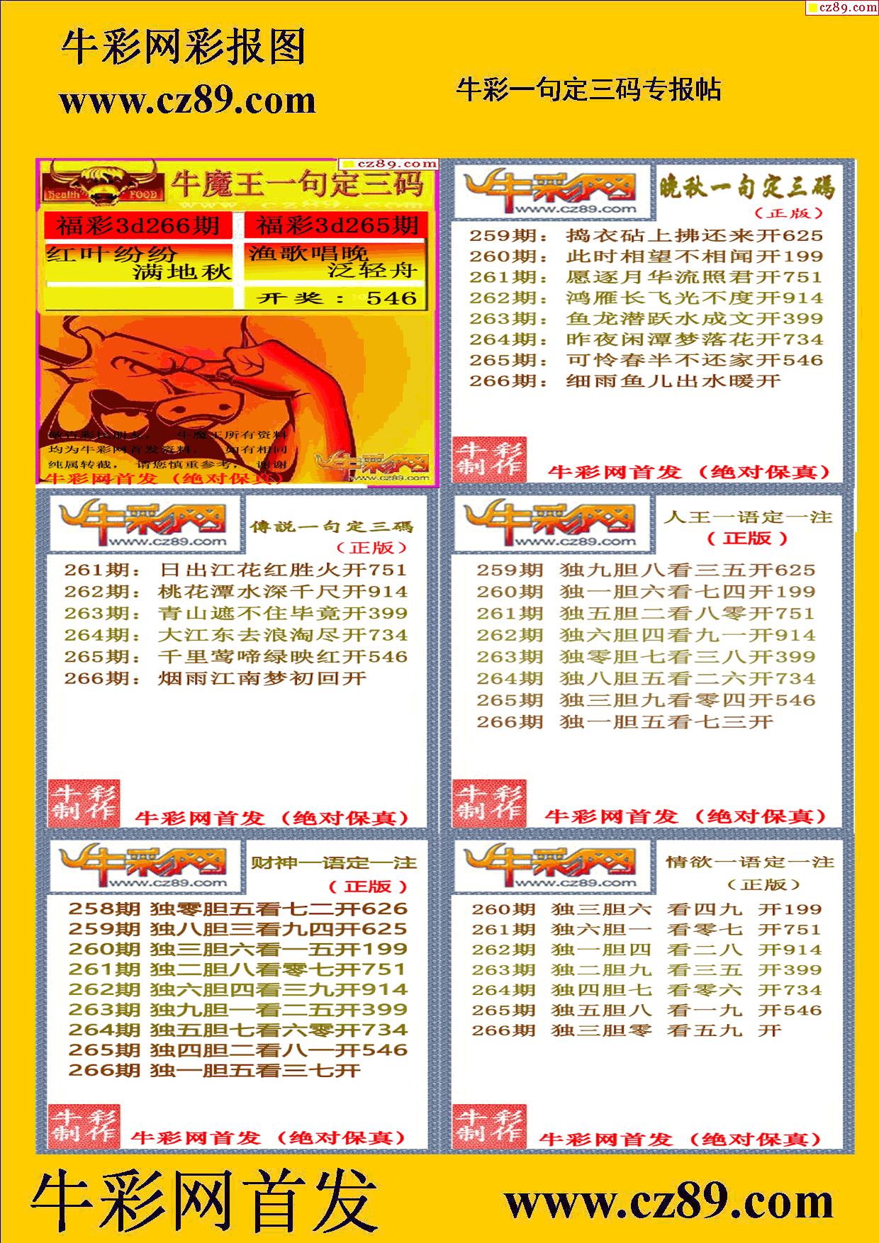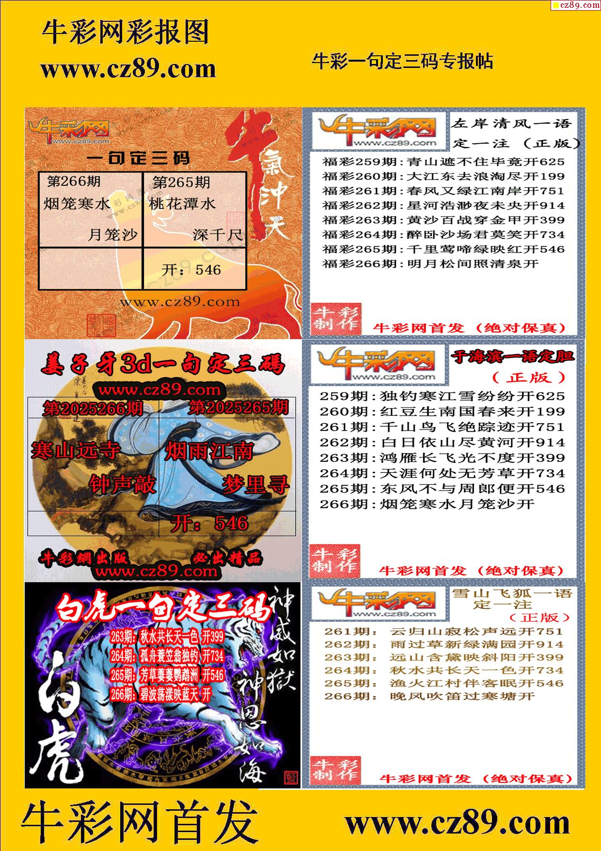 2025266期牛彩专家一句定三码彩报