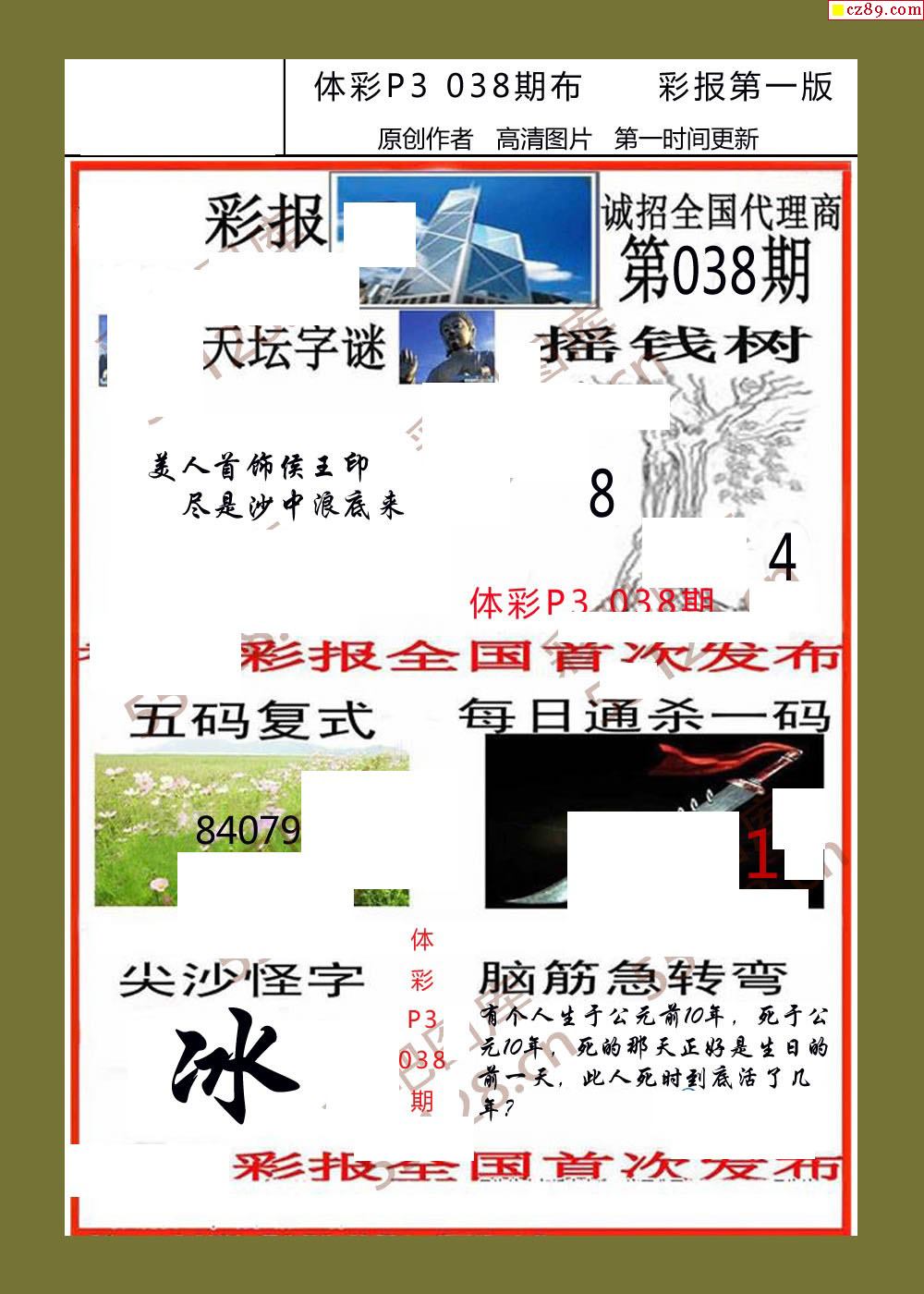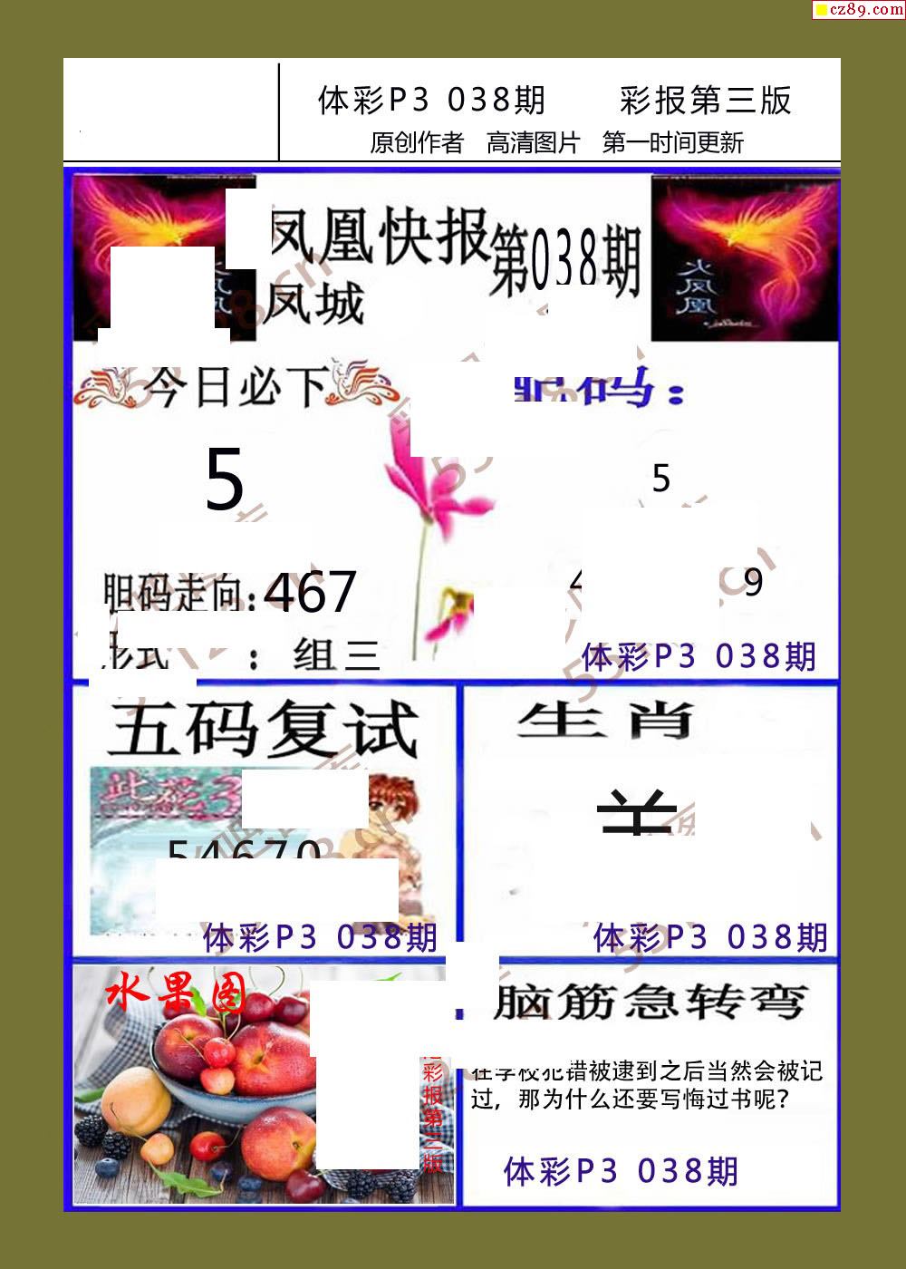 2026年038期牛彩网体彩P3画迷图谜汇总分享