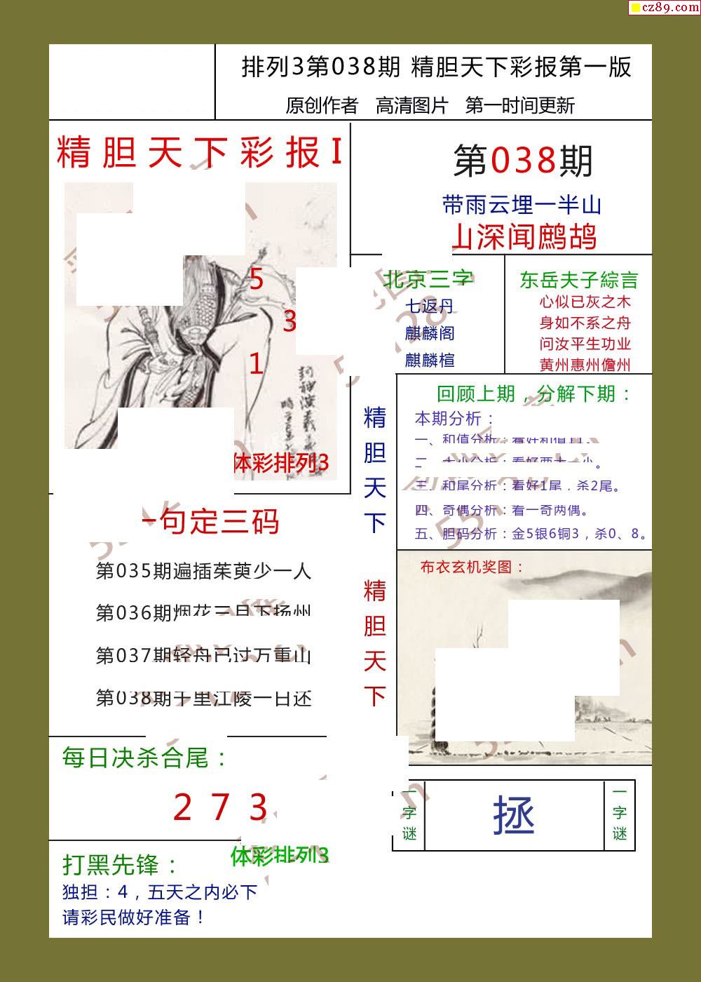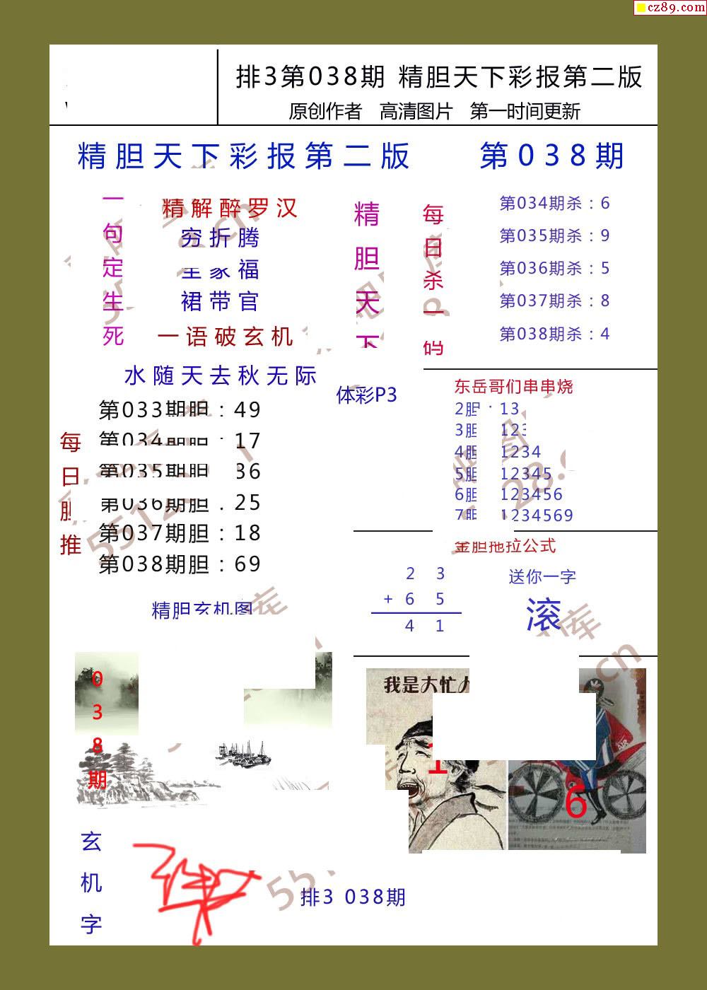 精胆天下彩报038期体彩p3图谜