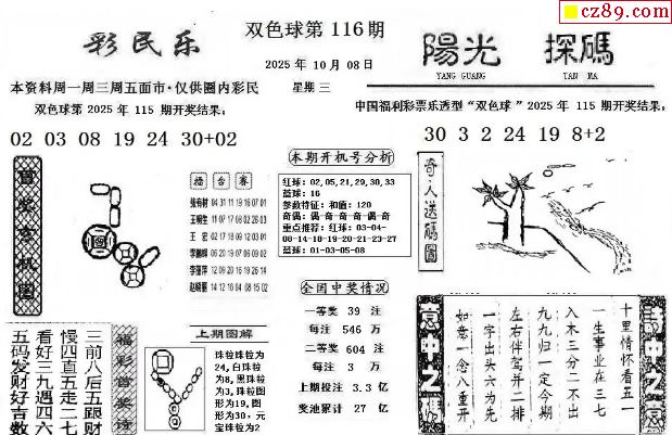 首页 > 双色球图谜 > 双色球2025116期 彩民乐+阳光探码图文版